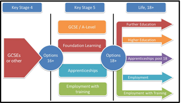 There is plenty to consider when deciding your next step post 16. The main thing to point out is that everyone needs to be in learning until 18. This does not mean staying in school, you can opt to study or train in any of the following ways: